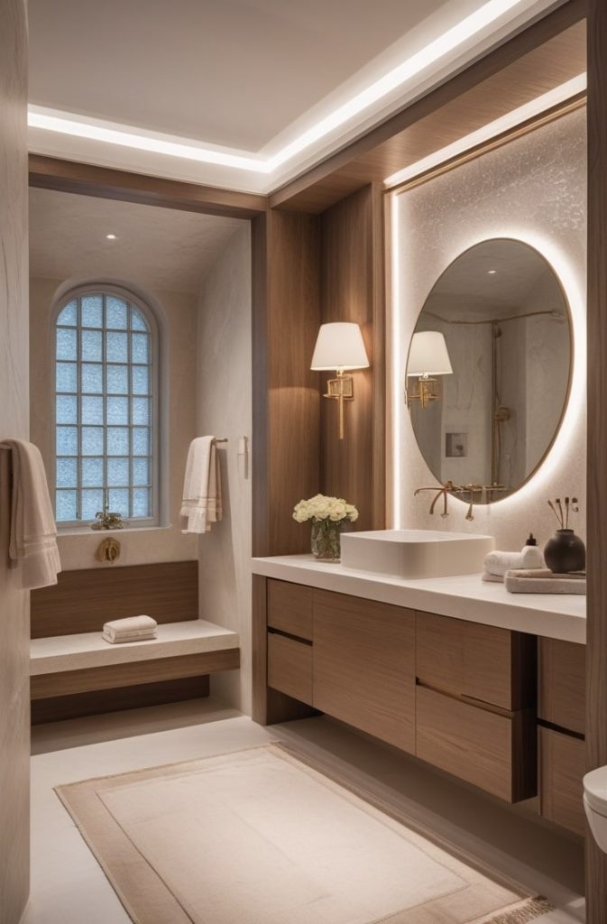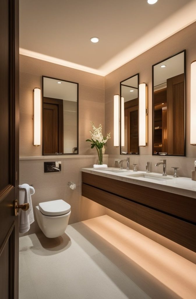 Lighting is one of the most overlooked aspects of luxury design. Hotel-style guest bathroom ideas rely heavily on layered lighting to create ambiance.