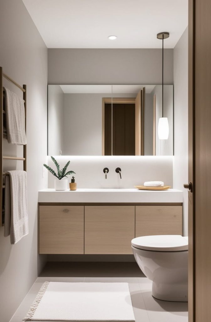 Neutral colors like white, grey, or soft beige work best for minimalist designs. I usually include one or two decor pieces, such as a plant or towel rack, and stop there.