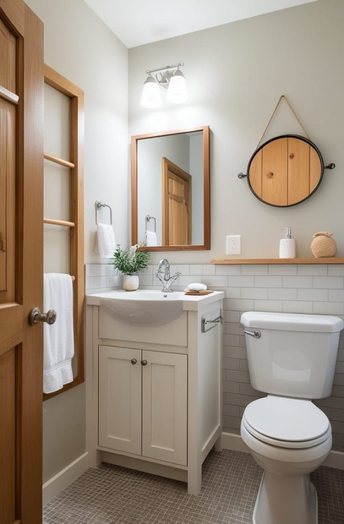 Even starter bathrooms can look good when colors and proportions are done right. Simple doesn’t have to mean boring.