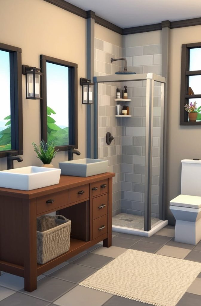 Details matter here—proper lighting, symmetrical layouts, and carefully placed decor turn a basic bathroom into a true luxury space within your build.