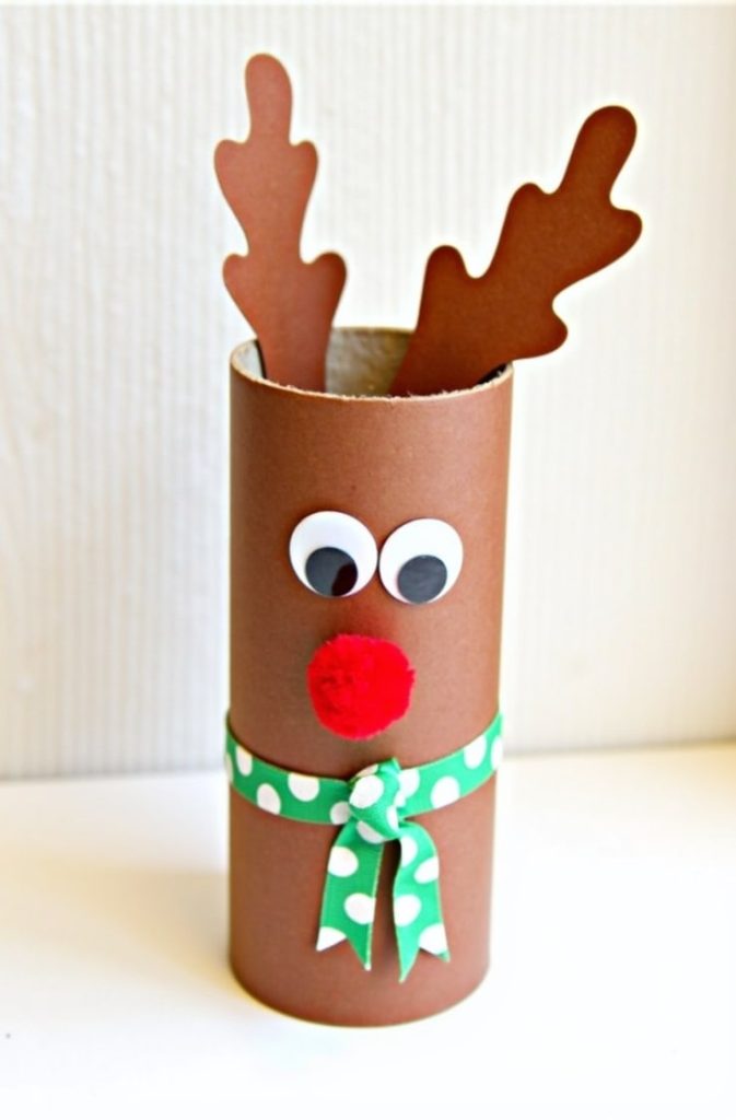 • Cut antlers from brown paper and glue them inside the tube’s top edge.