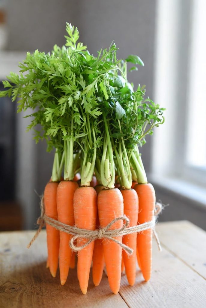 This is one of the easiest carrot bundle centerpiece diy ideas I use. I tie carrots together and place greenery or flowers in the center.