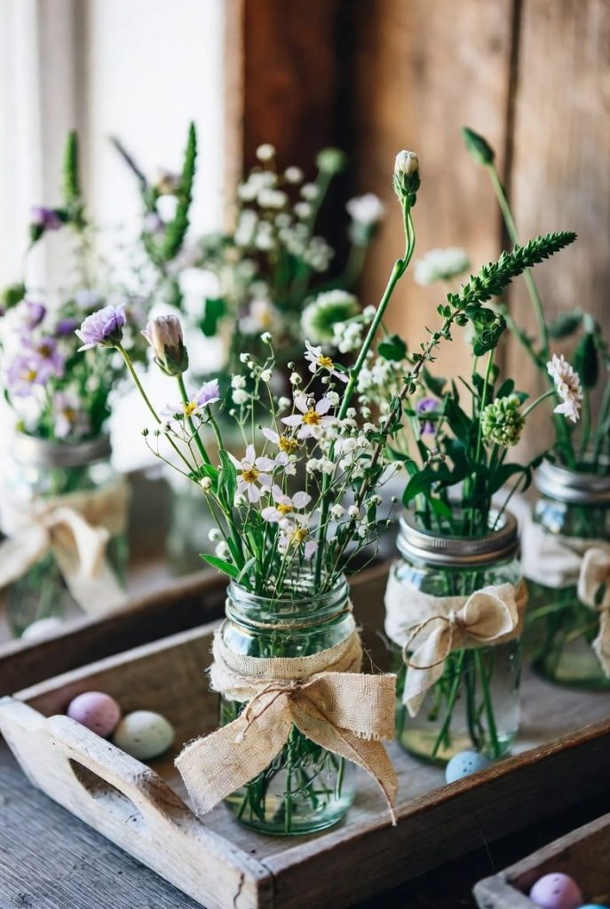 2. Rustic Easter Floral Arrangements with Mason Jars