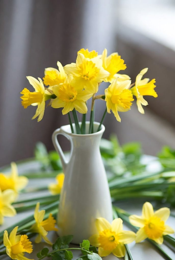 Daffodils scream spring to me. Their bright yellow color instantly energizes any room and makes them perfect for spring floral arrangements for easter.