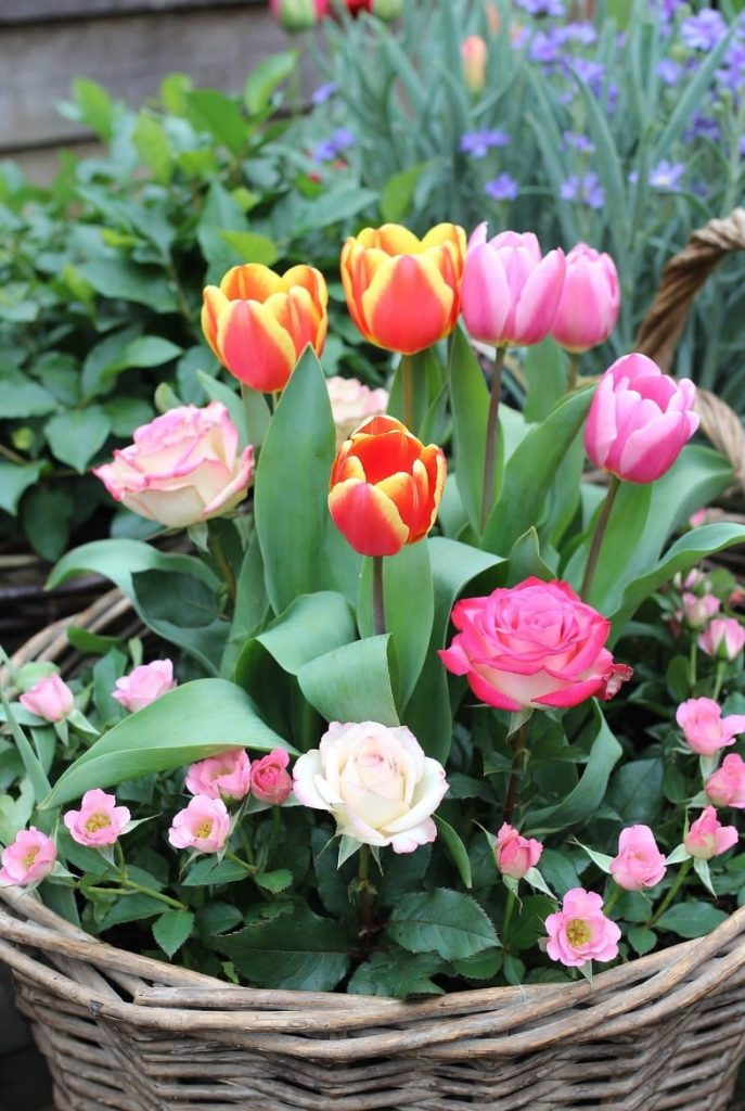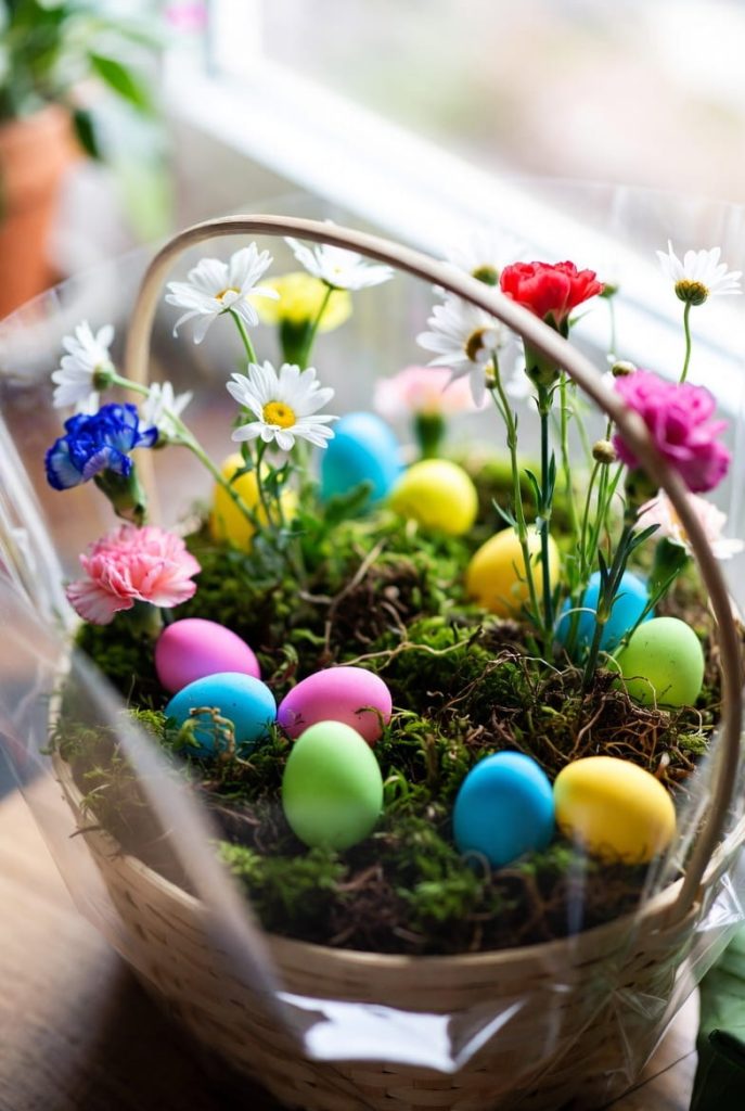 One of my favorite diy easter flower arrangements ideas is using baskets instead of vases. It feels festive and unique.