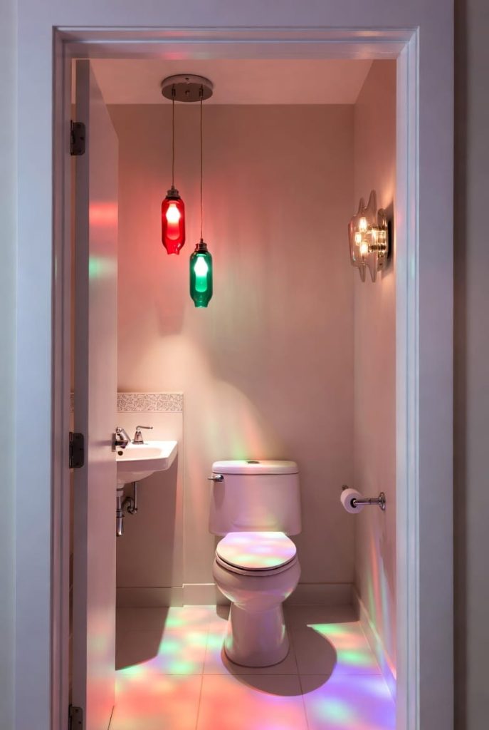 8. A Vibrant Powder Room With Colorful Lighting