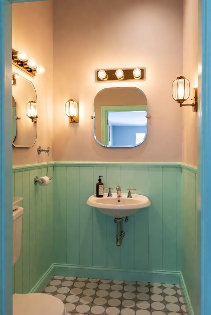 Retro styles often include pastel tones, checkerboard tiles, and rounded mirrors. These elements make the space feel both stylish and fun.