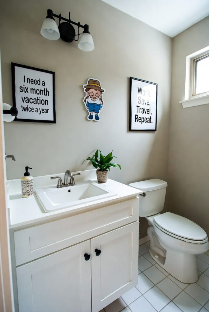 In a fun half bathroom, quirky prints or humorous quotes can instantly create personality.