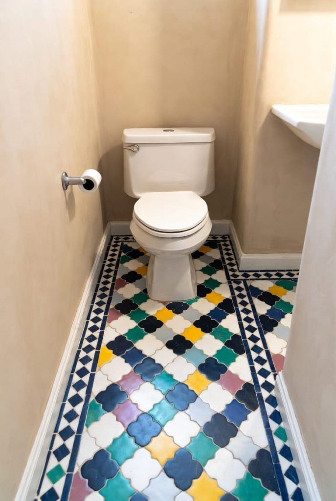 When I want to introduce personality without overwhelming the walls, I focus on the floor. Patterned floor tiles can instantly make a fun half bathroom feel unique.