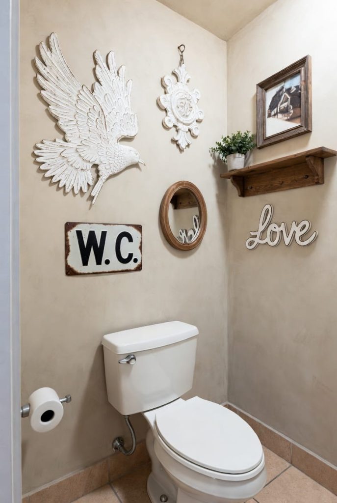 Wall art is one of the easiest ways to design a playful powder room decor style. I enjoy choosing artwork that makes guests smile or sparks conversation.