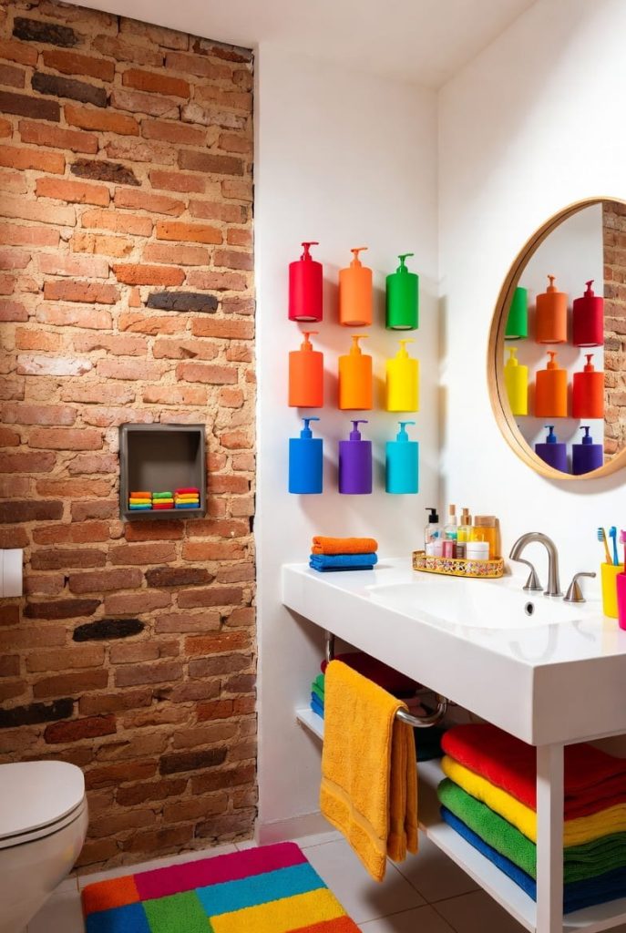 Colorful pendant lights or decorative sconces bring warmth and visual interest to the space.