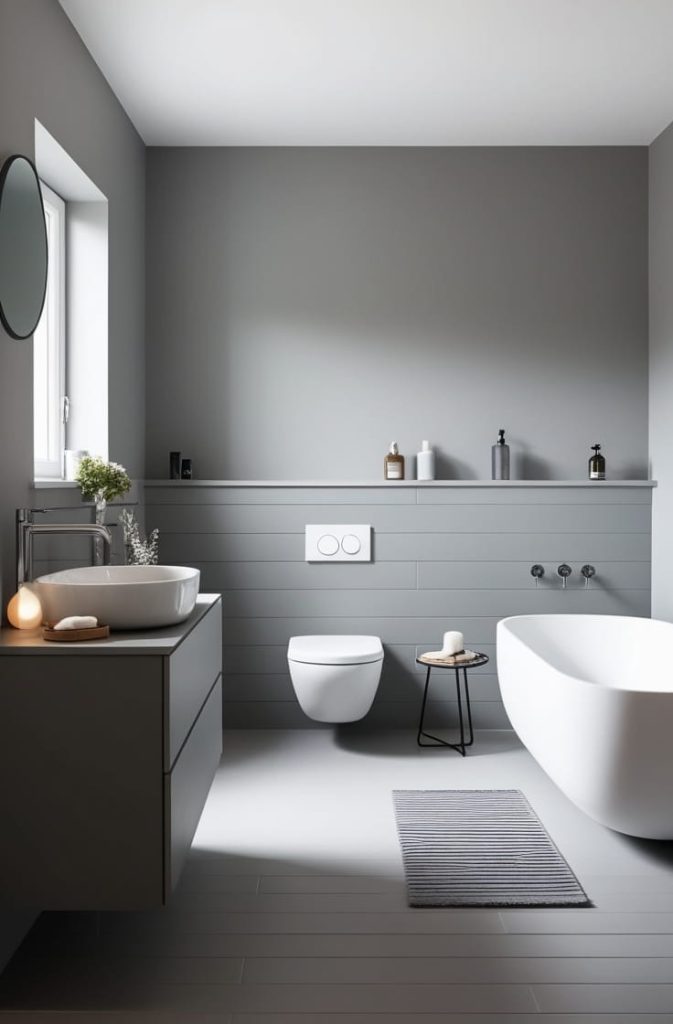 14. Minimalist Grey Bathroom for a Calm Feel