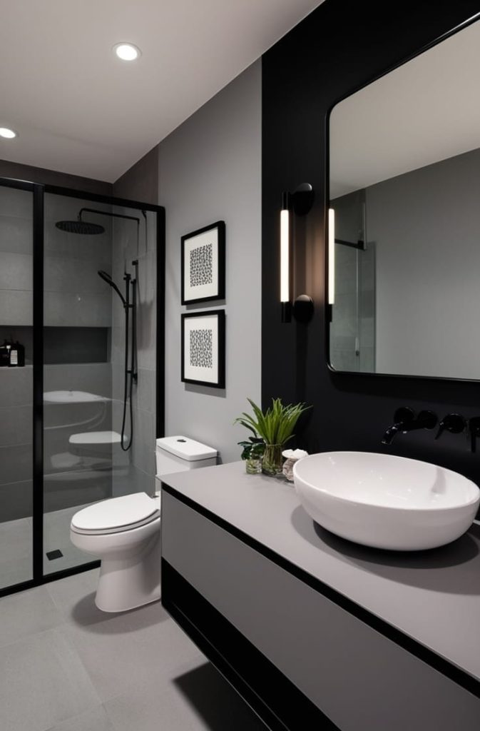 - 12. Grey and Black Bathroom for a Dramatic Contrast