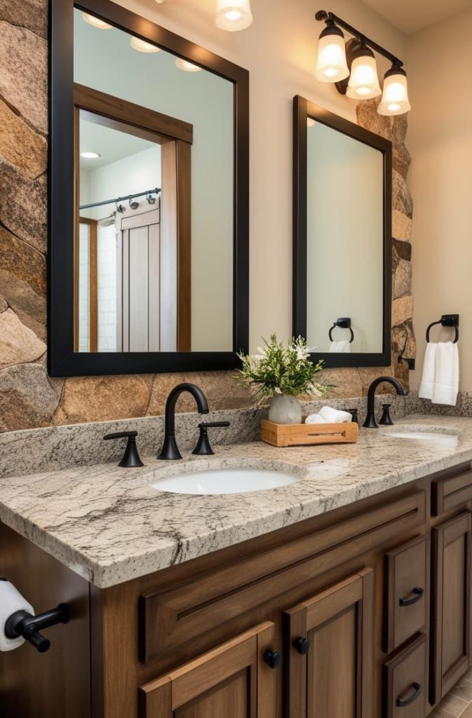 Granite works beautifully with farmhouse, rustic, and traditional décor styles, especially when paired with wood bathroom vanities or matte black fixtures.