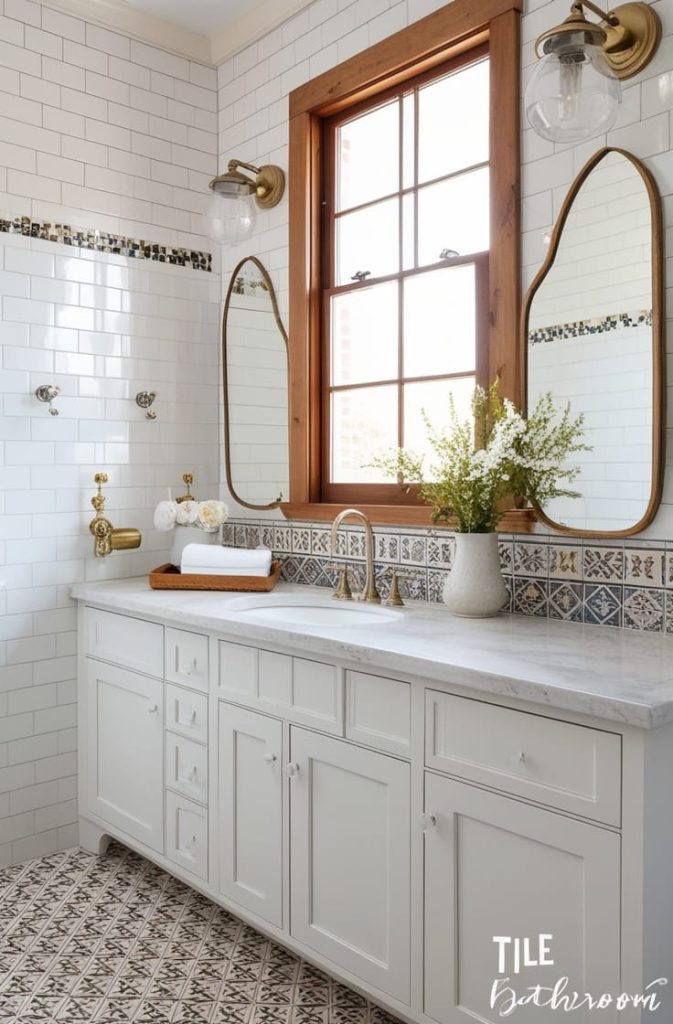 7. Tile Bathroom Countertop Ideas for Vintage Charm & Budget-Friendly Style