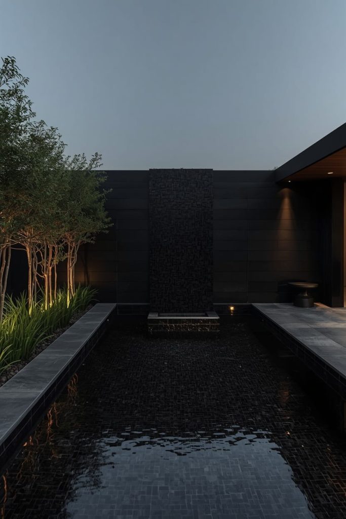 Dark tones reflect sophistication and make water features stand out beautifully.