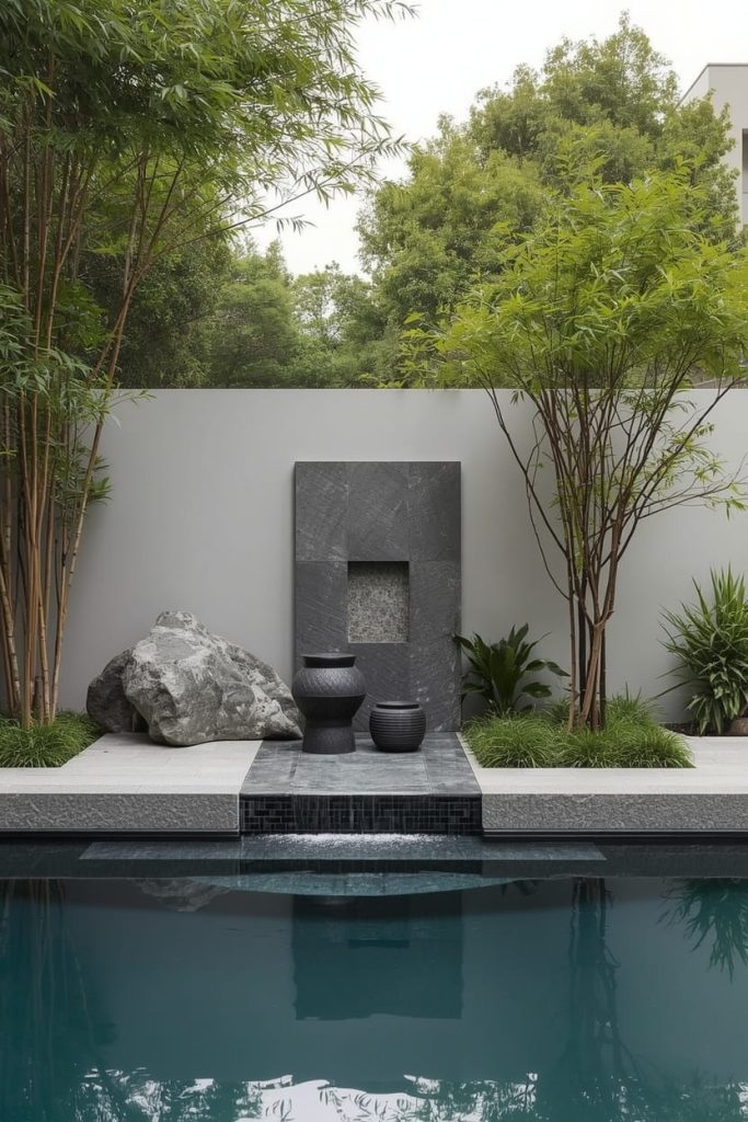 For calm and balance, I turn to Japanese-inspired outdoor pool area ideas. This design is all about simplicity and mindfulness.