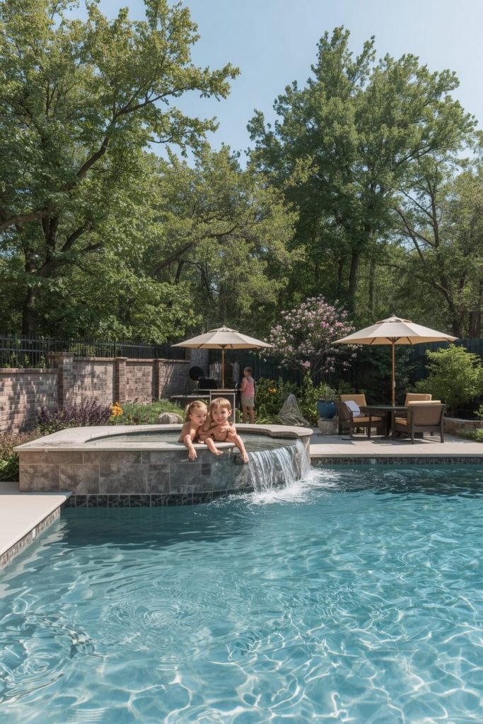 When designing for families, I focus on safety, fun, and functionality in outdoor pool area ideas.