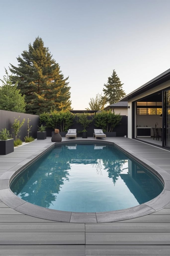 When I start any backyard project, I often lean toward a modern oval pool deck design because it feels clean, balanced, and timeless. The elongated shape of an oval pool naturally pairs well with straight deck edges, creating a sleek contrast that looks intentional and refined.