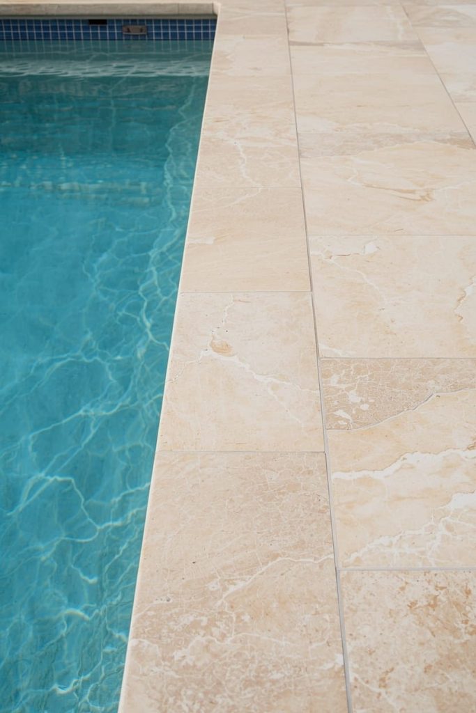 One of my favorite luxury pool coping inspiration materials is travertine. It instantly elevates any pool into a resort-style feature.