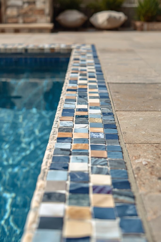 This approach is part of many decorative pool coping edges where customization is key. I often match tile colors with surrounding deck materials.