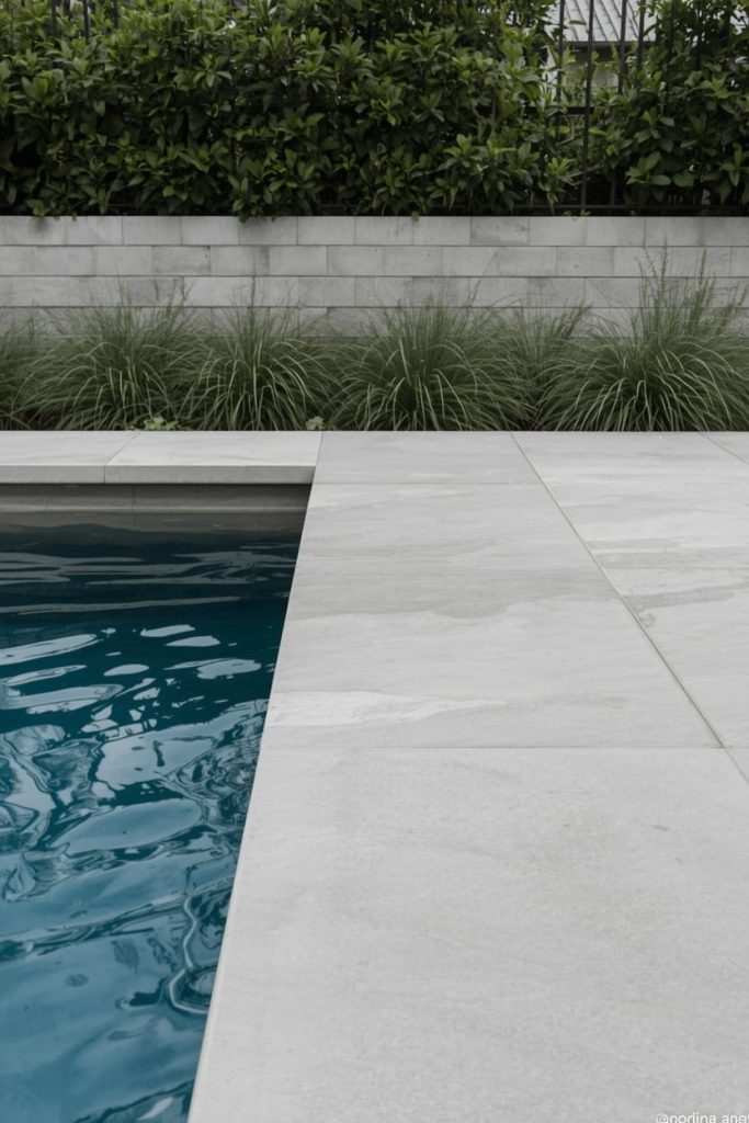 A modern approach I like is extending large slabs beyond the pool edge. This is one of the most trending modern pool coping ideas today.