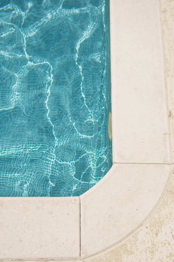 Concrete coping can be shaped into sharp or smooth edges depending on the desired aesthetic. I usually recommend it for contemporary homes because it creates a seamless transition between pool and deck.