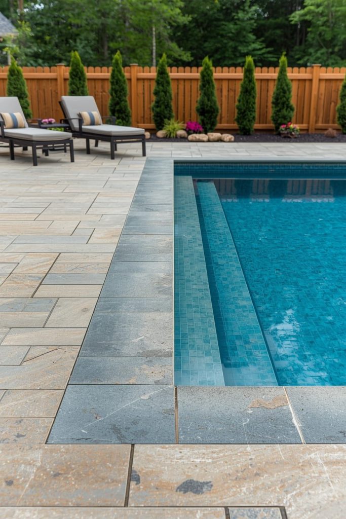 It creates a seamless connection between the pool and deck, especially in minimalist outdoor spaces. I often use this in modern backyard pool edging ideas.