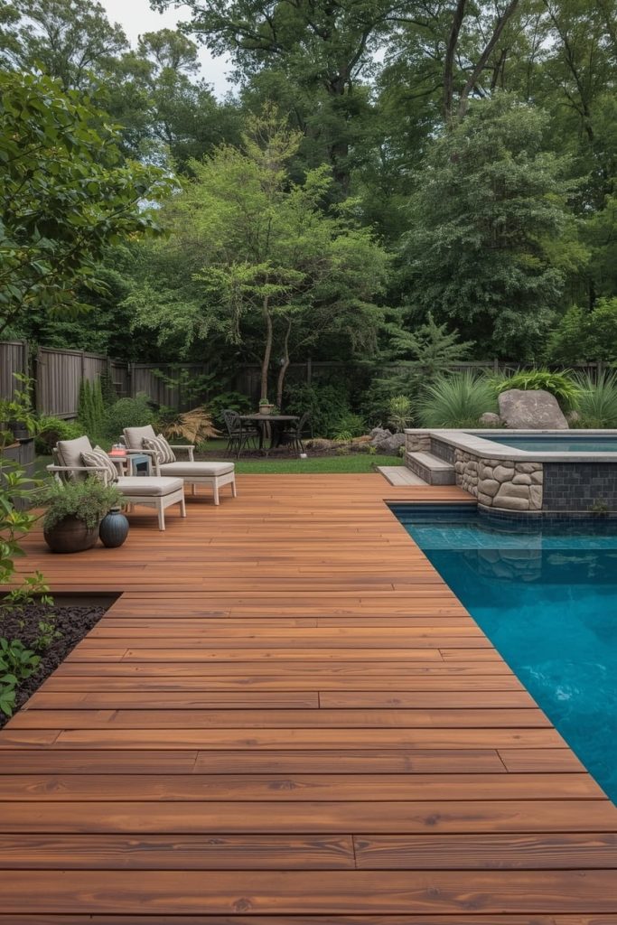 - 5. Wood Tone Pool Deck Design for Natural Elegance