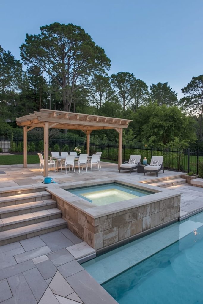 If you want a more dynamic look, consider multi-level pool deck ideas. This design creates zones for lounging, dining, and relaxing.