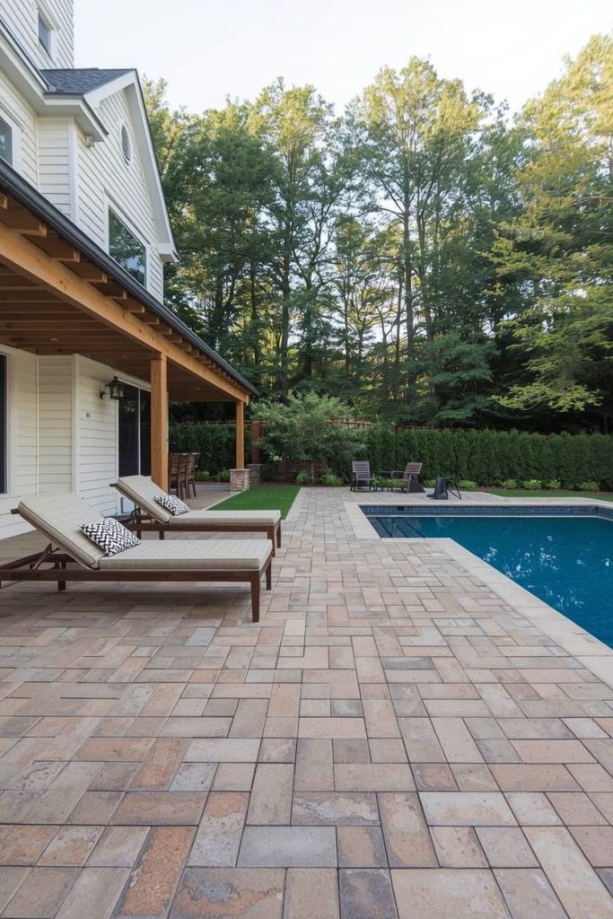Whenever I design pool deck flooring ideas, pavers come up as one of the most flexible options. They allow endless design combinations, from modern geometric layouts to rustic stone patterns. I personally love how they instantly elevate backyard aesthetics.