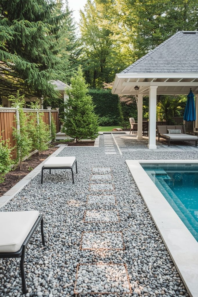 8. Gravel & Pebble Pool Deck Flooring Ideas for Budget Spaces