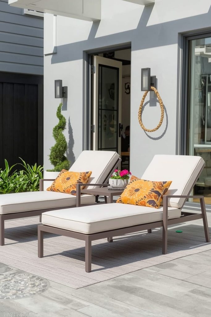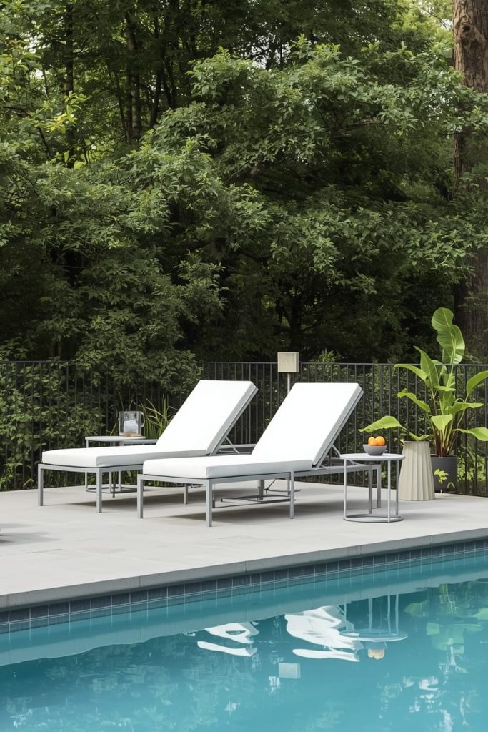 I always start with modern pool deck furniture ideas because clean lines instantly elevate any backyard pool. Sleek lounge chairs create that resort-like feel without overwhelming the space. I like choosing neutral tones like white, gray, or beige to keep everything visually calm and sophisticated.