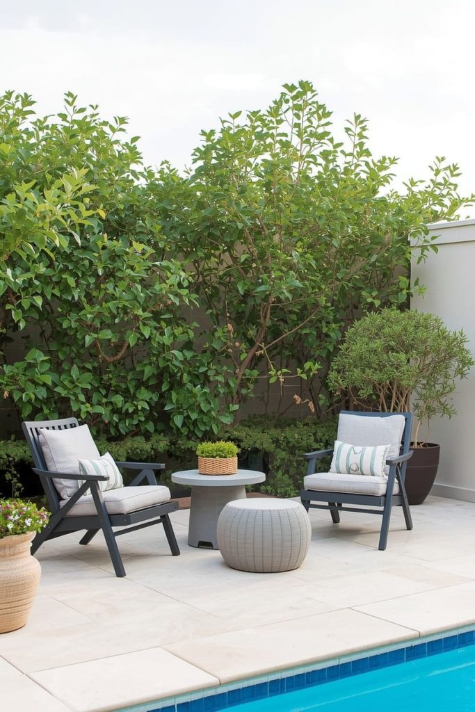 Even simple setups can reflect stylish pool deck seating ideas when arranged thoughtfully.