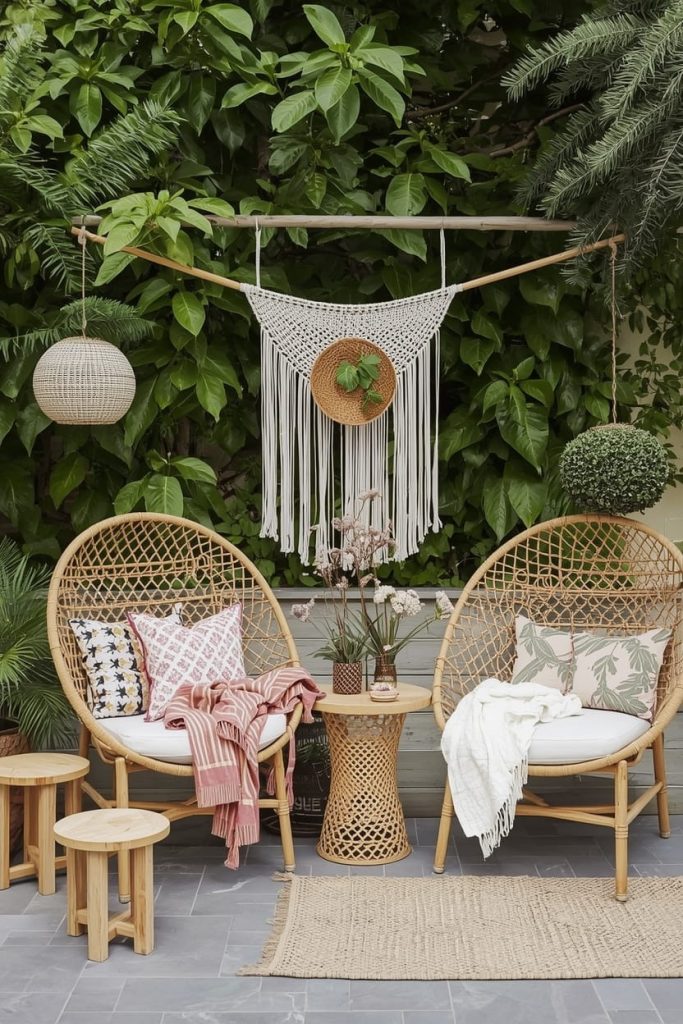 5. Boho Poolside Furniture Ideas with Natural Textures