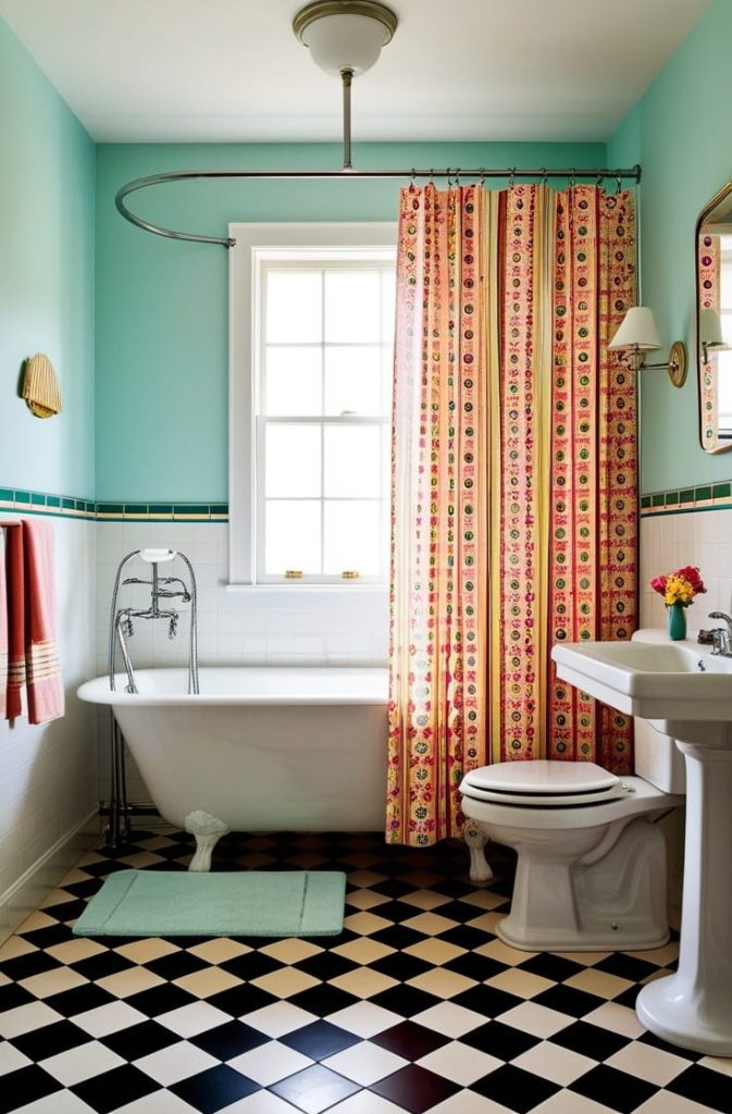 10. Add a Clawfoot Tub or Retro Shower Curtain for True Nostalgia