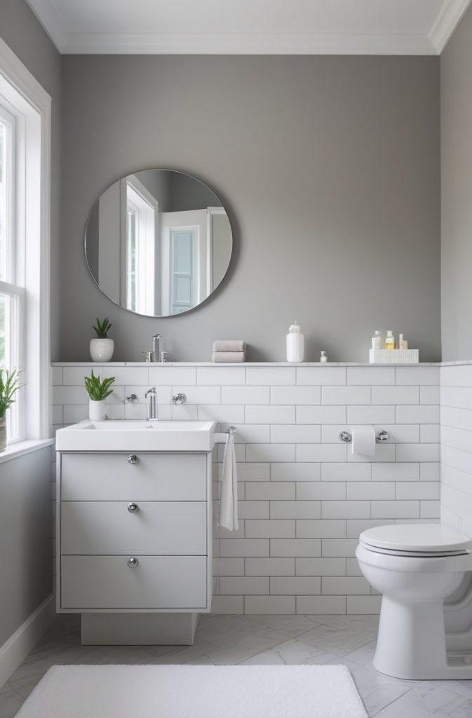 - 2. Light Gray and White for a Clean, Modern Small Bathroom