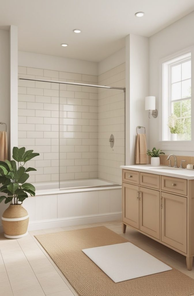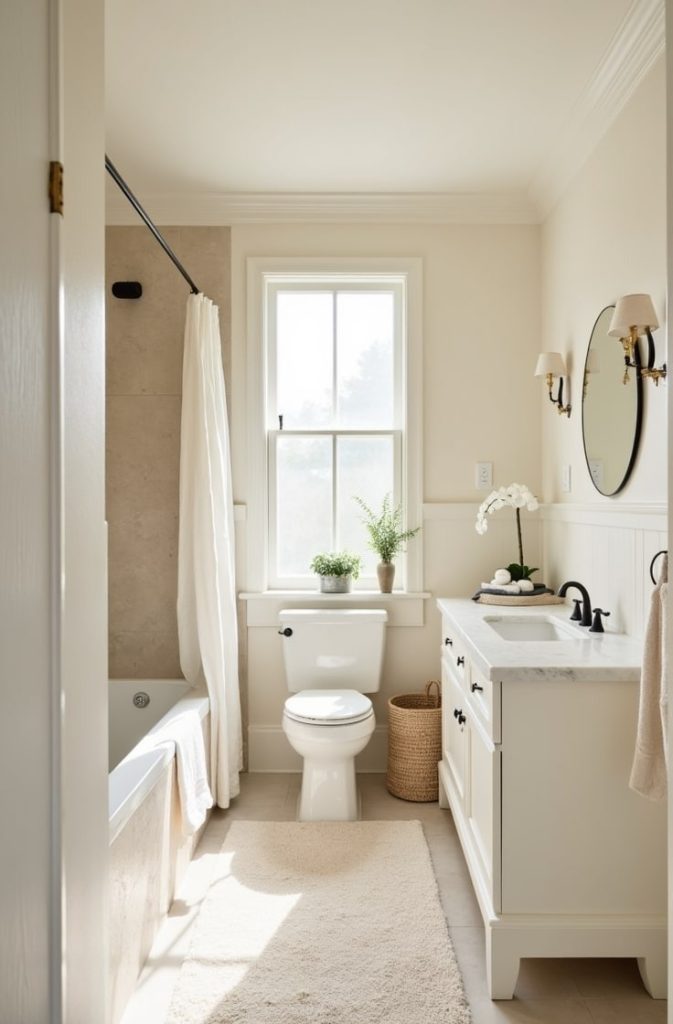 - 6. Beige and Cream for a Cozy Small Full Bathroom