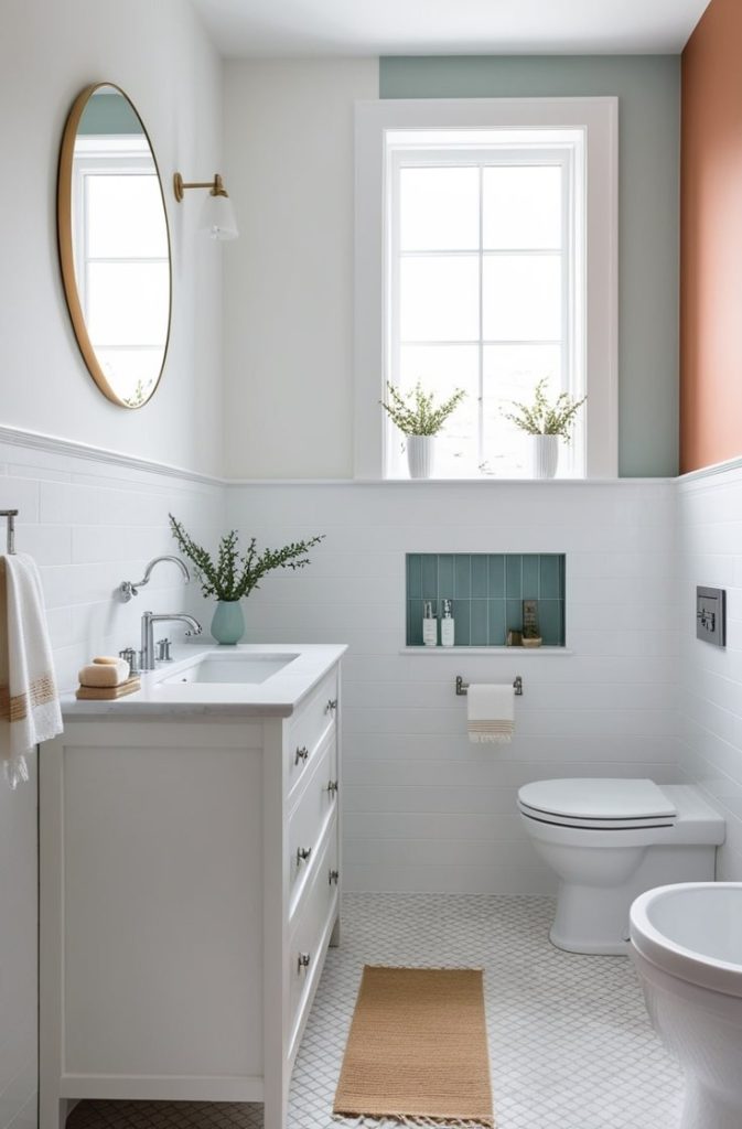 This method allows flexibility and easy updates over time. Using accent wall colors for small bathrooms sparingly keeps the room open while adding character and visual depth.