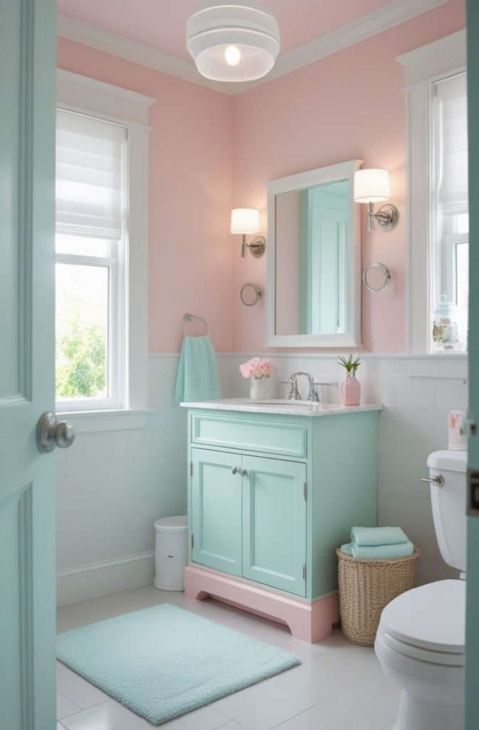 - 7. Soft Pastels for Bright and Playful Small Bathrooms