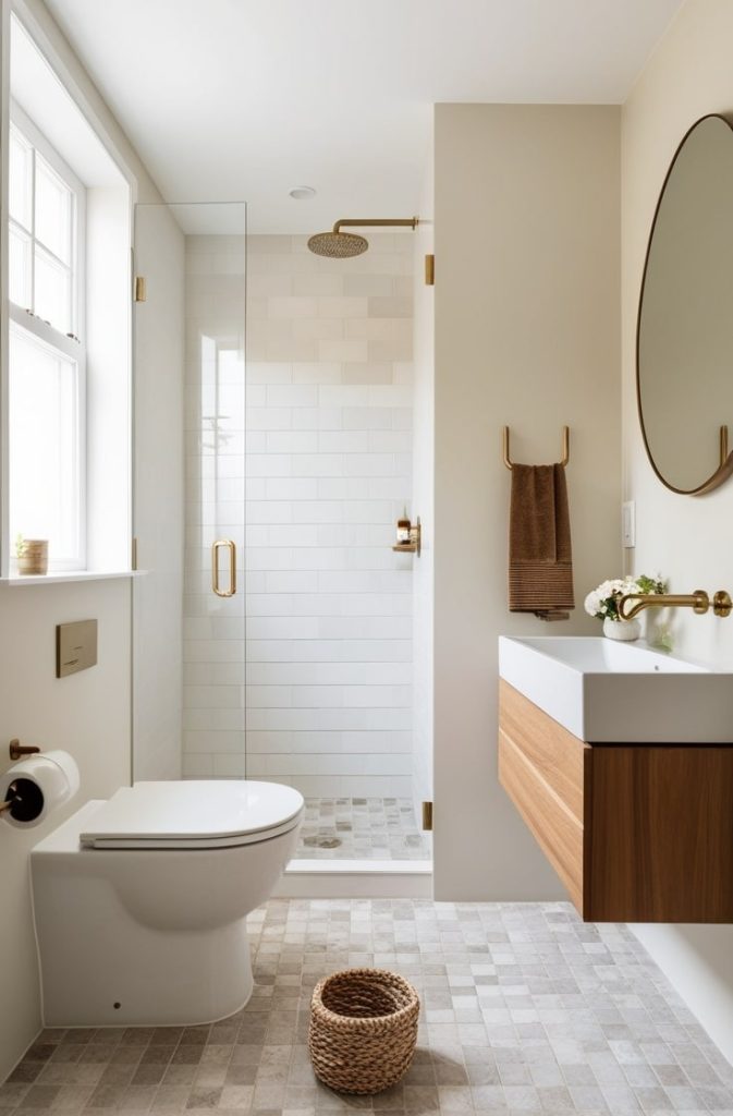 Neutral palettes are ideal for small full bathroom makeovers where longevity matters.