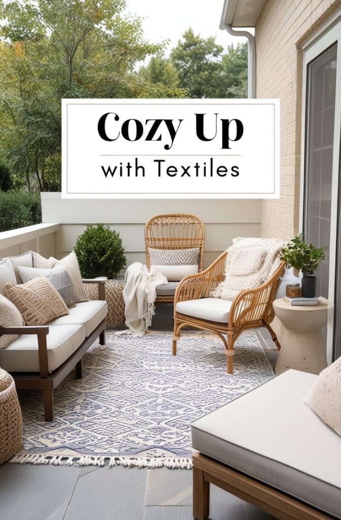 Your patio should feel like an extension of your home, and textiles are the key to that cozy vibe. I love layering outdoor rugs, cushions, and throws to make my space feel inviting.