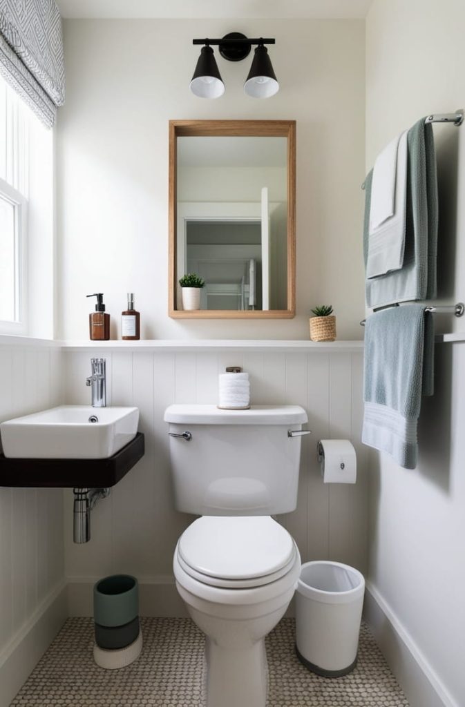 For décor, I usually include a plant, a small framed print, and neatly folded towels. This keeps the room fresh without overwhelming guests. A minimalist approach also aligns perfectly with tiny bathroom inspiration trends, where clean lines and uncluttered surfaces dominate.